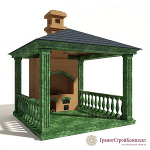 Беседка из натурального камня в стиле Аля Рус,мрамор Змеевик
